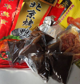 顺藤摸瓜,一组调查人员在张跃峰暂住地(丰台区新发地汾庄)查扣劣质鸭111箱共计3800余只,劣质鸡爪、鸡脖子等231箱,外包装烤鸭袋4箱,甜面酱20箱。